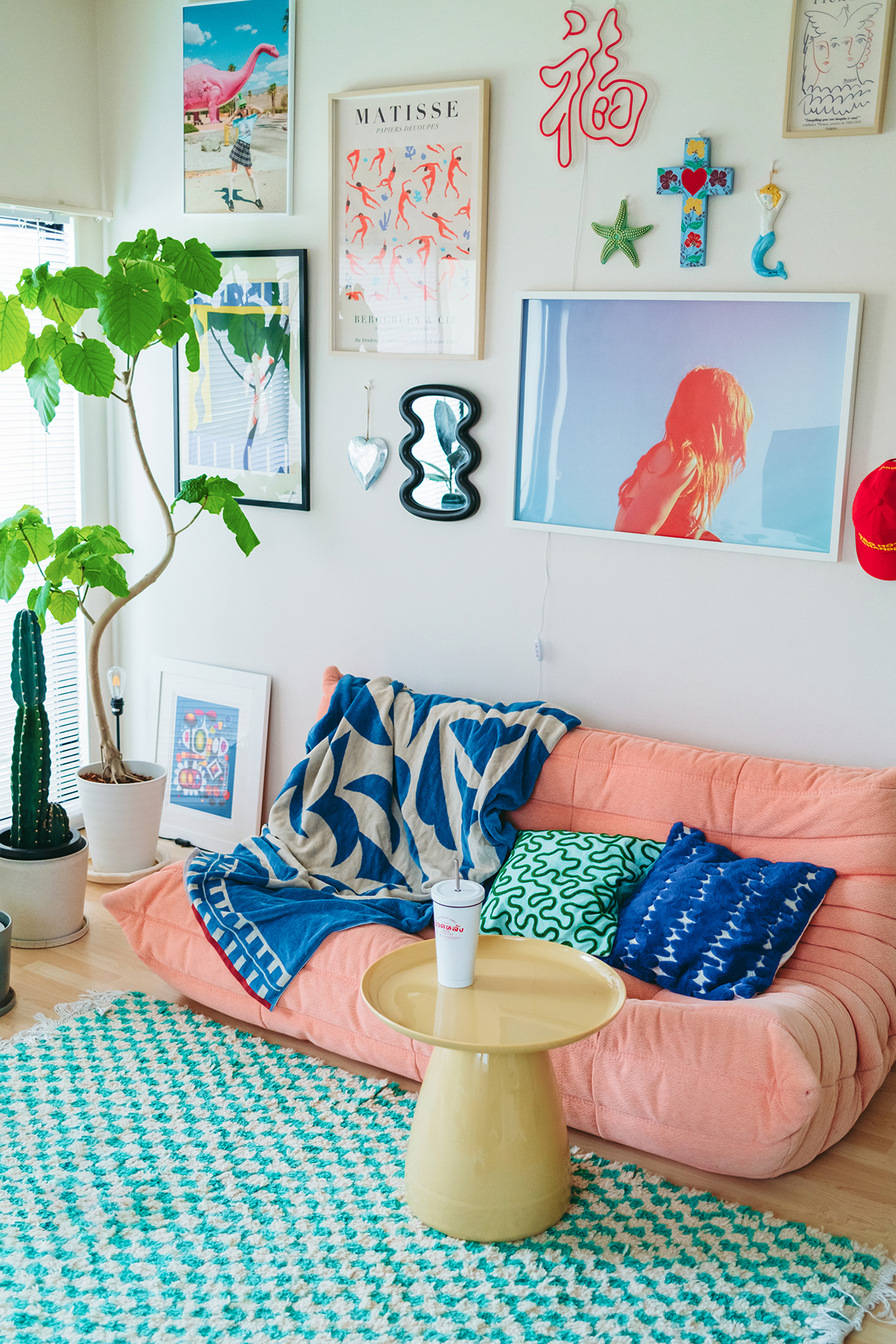 一番大きなフレームは写真家Chad Mooreのポスターです。僕の好きな写真家のひとりで、どうしても欲しかったのでアメリカから取り寄せました。僕がLAで撮影した写真もポスターサイズに印刷して飾っています。最近買ったのは『福』のネオンサイン。中華料理屋さんでよく“福”という文字が飾られているのを見かけたので自分の部屋にも取り入れてみました。