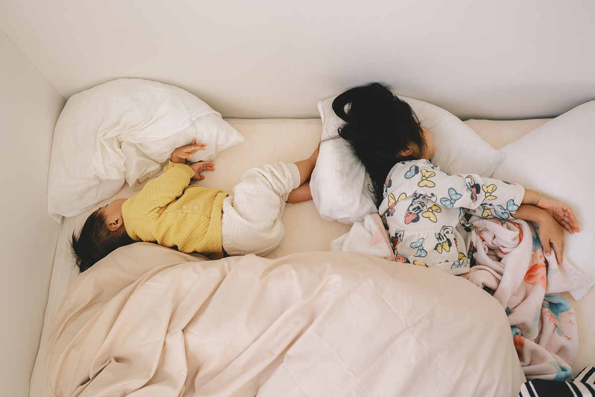 朝起きて子供たち見たら、手を握りながら寝てた。キュン