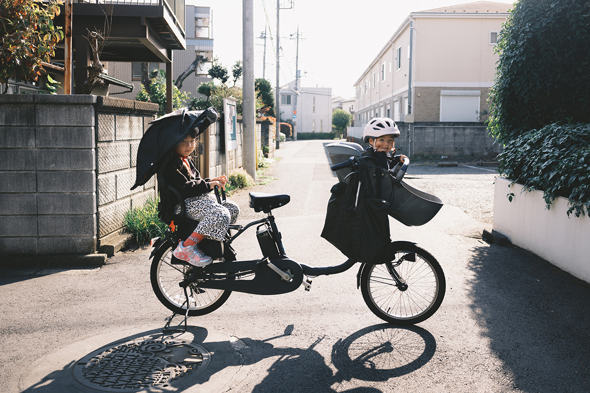 毎日これに乗って登園!来年から長女は小学生。こんな毎日もあと少しだと思うと、想像しただけで泣きそう。