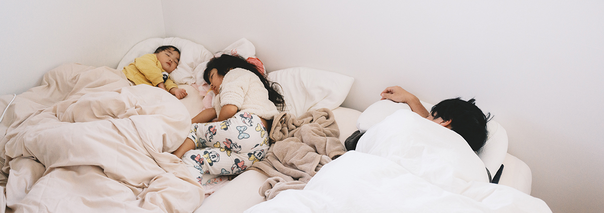 ダイヤルで手軽に変えられるアスペクト比を17:6に設定して撮影!これで撮ったら3人画角に収まった!4人で寝るのはあと何年だろう。何年もないのかなぁ。