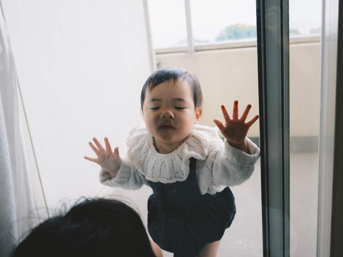 ガラスがあったらやっちゃうよね。子供らしい仕草はつい写真に残したくなる。