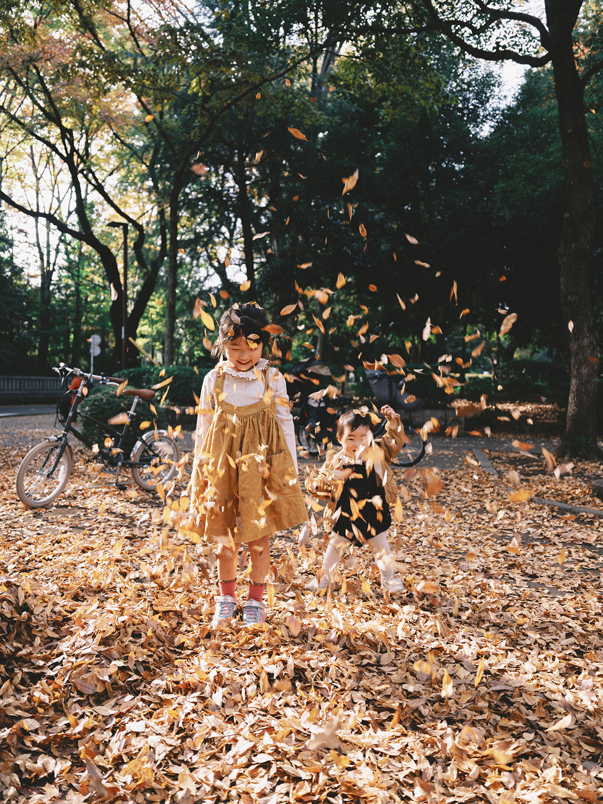 秋晴れの休日、家族で近くの公園に。たくさんの落ち葉を集めて遊んだよ。決定的瞬間は、ファインダーを覗きながら。ファインダー越しの画質が綺麗すぎてびっくりしちゃう!