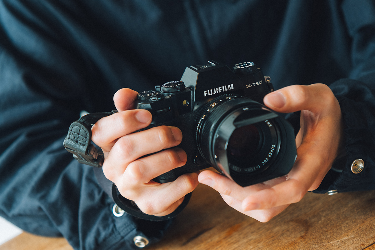 まず、質感、見た目、無駄のないデザインですね。デザイン性を強く打ち出したカメラはほかにもありますが、どこかおもちゃっぽさを感じてしまって。「本物だ」と思える洗練された『X-T50』の質感にはとても満足しています。それと、やっぱりこのコンパクトなサイズ感。普段カメラを持ち歩くときは、右手にハンドストラップを通して、片手は常にカメラを持っている状態にしています。持ち運びたくなるこの軽快さは、日常の風景を作品に変えるために最も重要な要素だと感じています。
