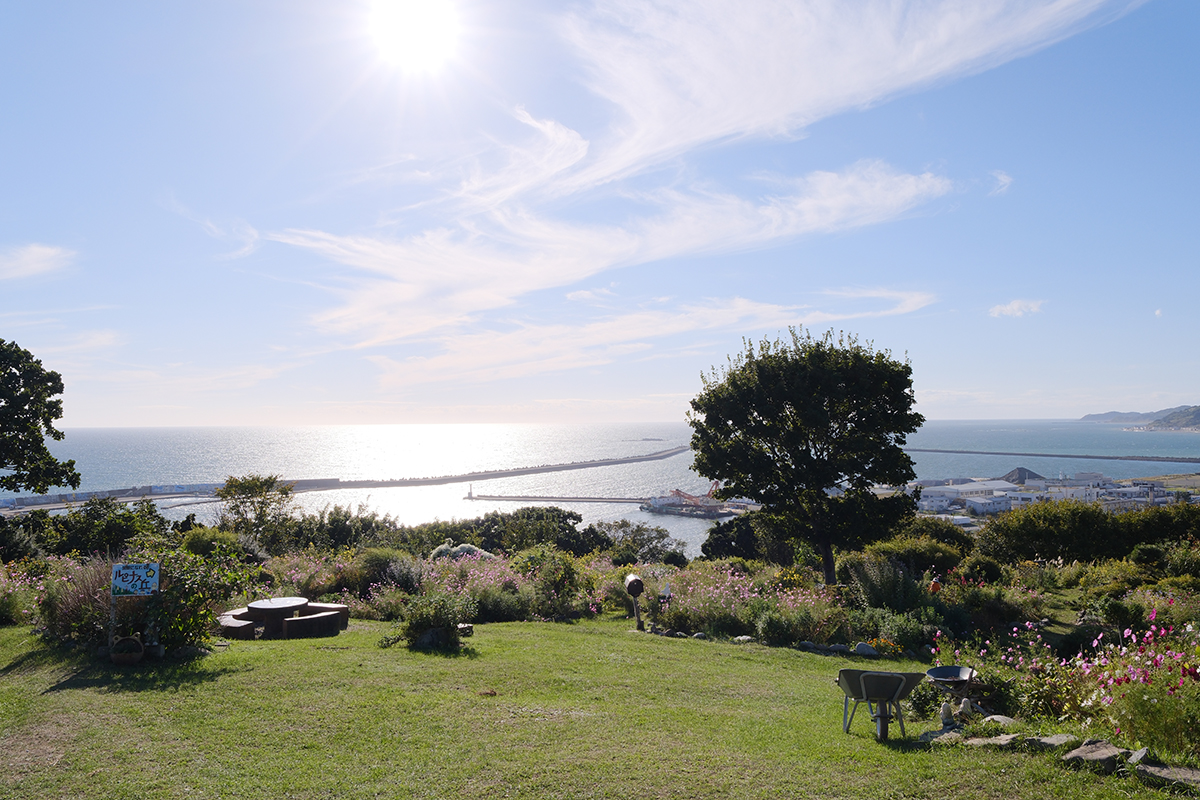 ルピナスの丘はスポーツ施設『ゼロネクストワンアリーナ』の裏手にあって、太平洋を一望できる。