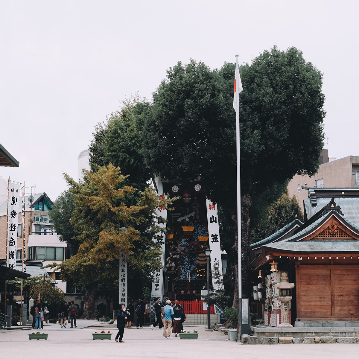 福岡の代表的な祭りの博多祇園山笠。櫛田神社の敷地内では、年中飾り山笠を見ることができます。