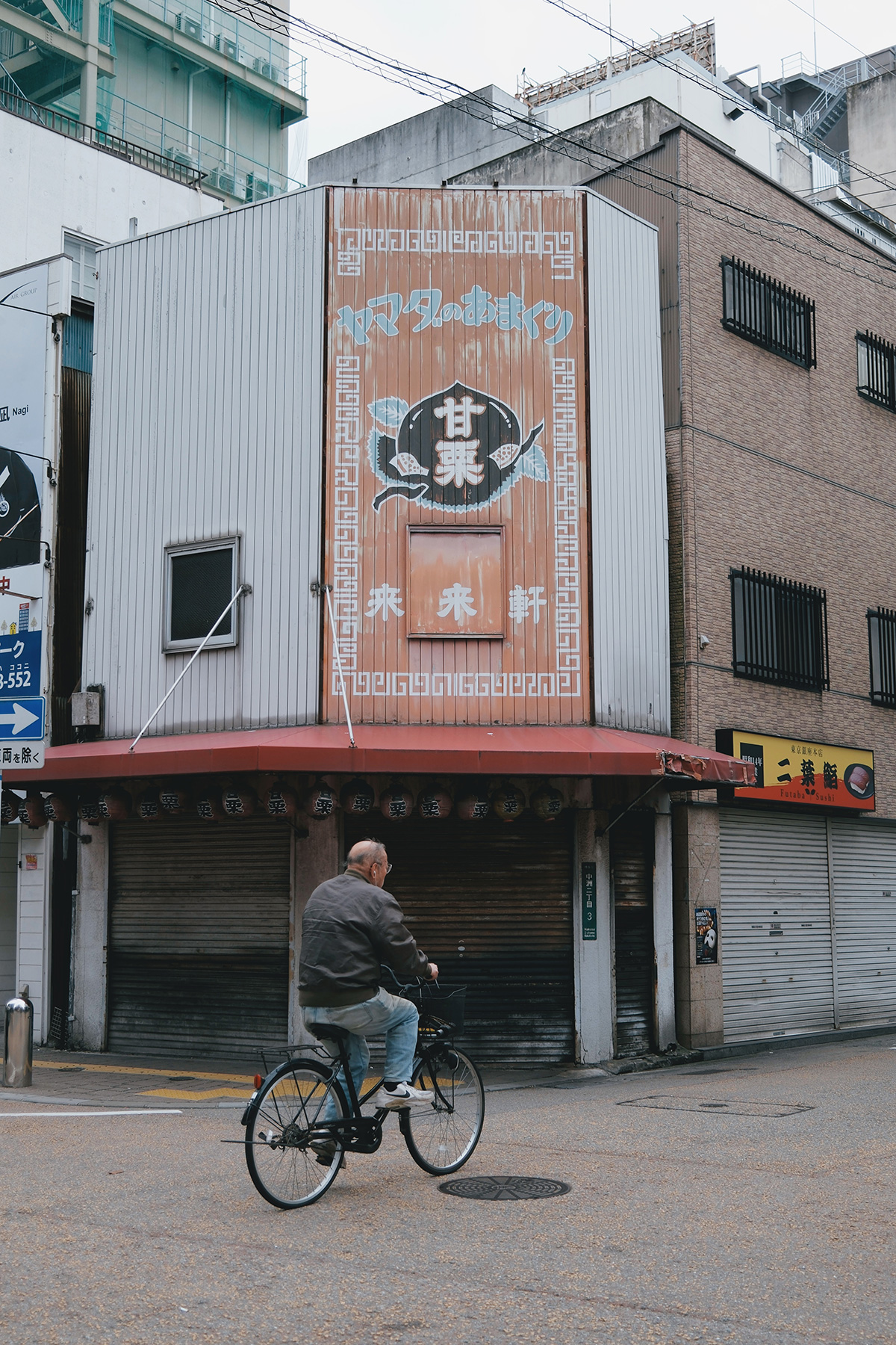 夜賑やかな場所が昼は閑散としています。古い建物が多くゴチャっとした雰囲気が好きです。今回の散歩で気づきました、私は“通過する自転車”を撮りがちだということに!