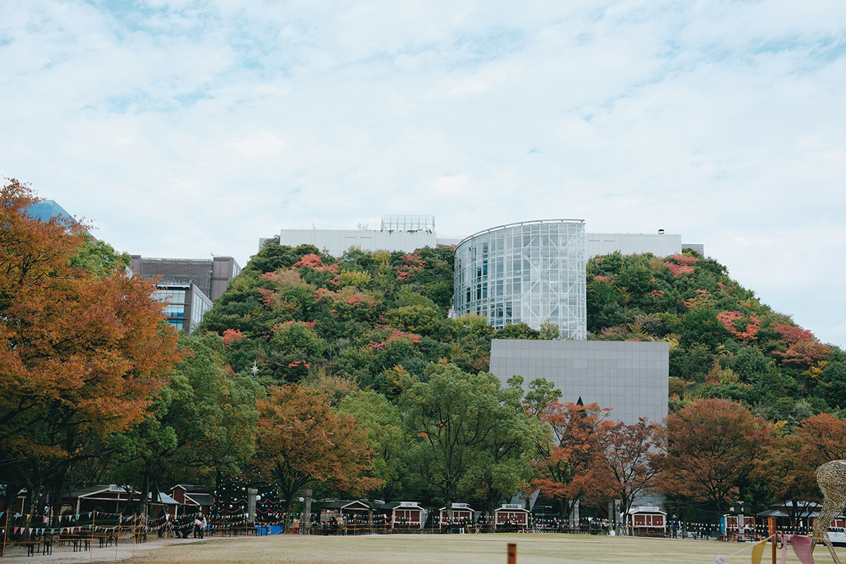 ビルが緑で覆われているちょっと変わった建物です。11月なので紅葉している部分もありました。
