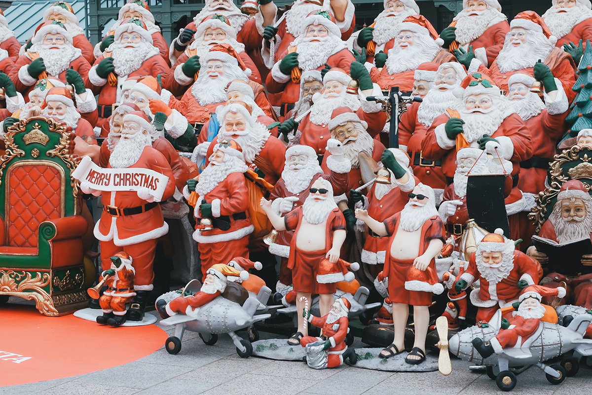 公園内はクリスマスの準備で大量のサンタクロース!毎年この時期サンタだらけになります。