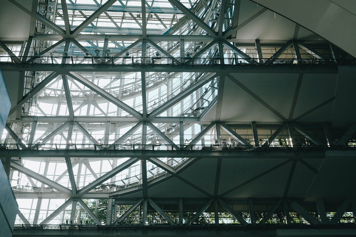 アクロス福岡は建物全体がガラス張りで、陰影がキレイ。カメラを持っている時は、自然と光や影が目に入ります。