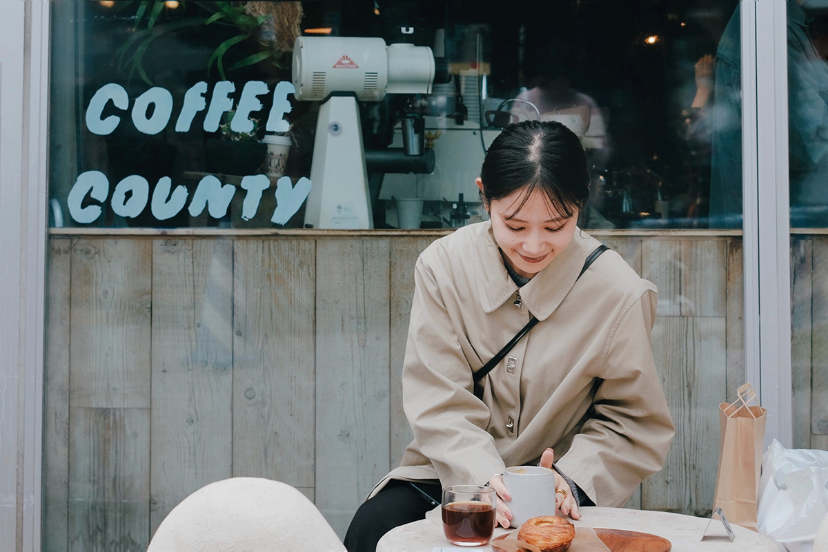 福岡で有名な『pain stock』というパン屋と、『COFFEE COUNTY』というカフェが一緒になっているお店です。コーヒーが好きなのでコーヒー休憩を挟みがち。この日はテラス席が気持ちよく、コーヒーを飲みつつお喋り。