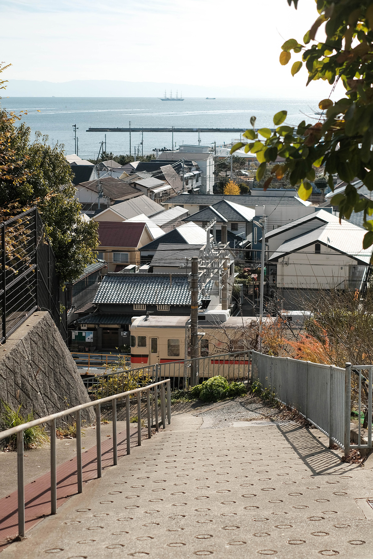 坂の斜度が想像よりも急だったけれど、頂上まで登って振り返ると、丘の起伏に寄り添うように、海と電車の風景が重なった、 まるで尾道にいるようなひとときに出会えた。