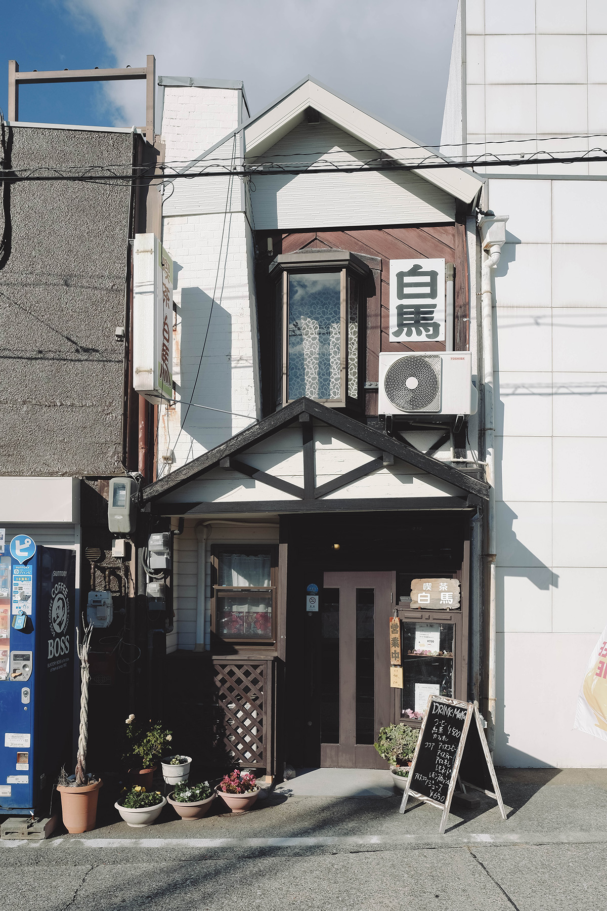 今回の散策の終点は、JR須磨駅前の老舗喫茶『白馬』。一杯の珈琲でこのカメラ旅を締めくくる。
