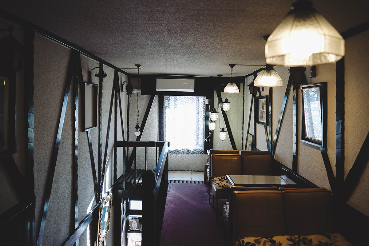 2階席は現在使われていないが、撮影してもよいか尋ねると、店主がそっと灯りを点けてくれる。